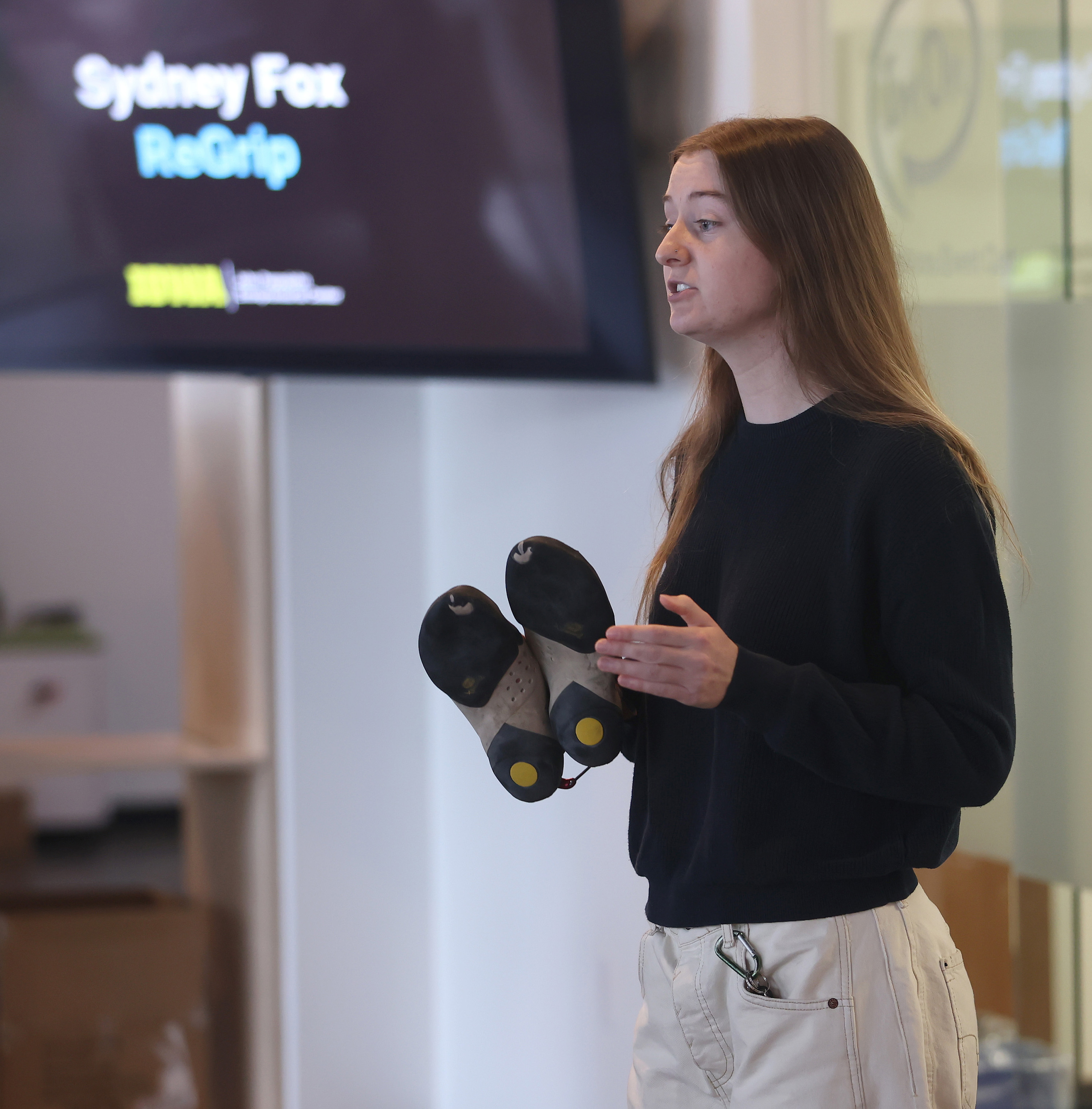 Savanna Kaczynski and WedGen won first place and $1,000 in the Tech/Student Lifestyle category. Sydney Fox and ReGrip won first place and $1,000 in the Consumer Product category. WedGen is an all-in-one wedding planning platform; ReGrip is a climbing shoe repair brand that offers simple repair solutions that allow climbers to restore worn rubber themselves.